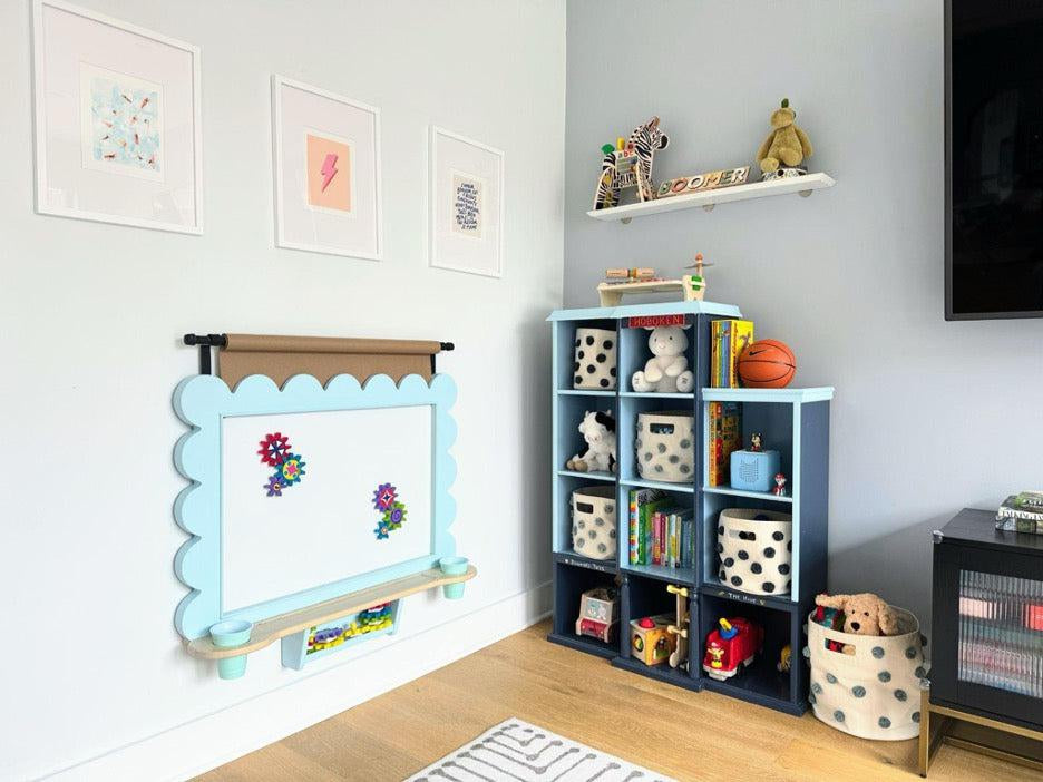 Little Boom Designs founder, Zoë Roscoe Bridgeman, shares her tips and tricks for giving your playroom a little makeover and how to keep it organized.