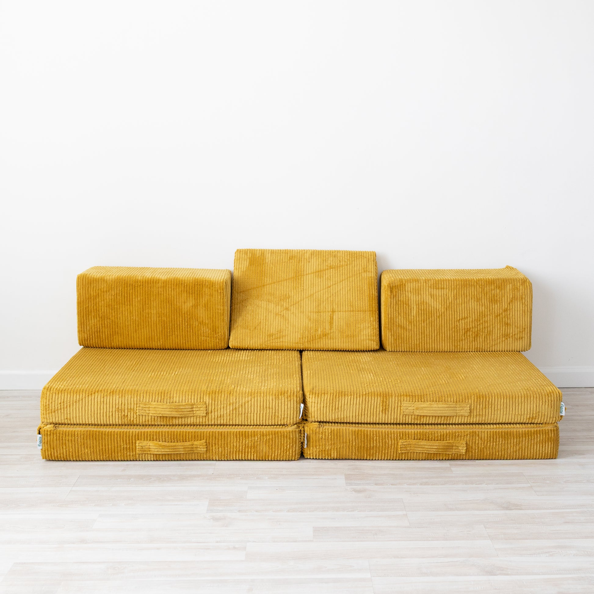 Unlike other play couches that pre-connect the base pieces the Figgy features four individual foundation cushions that can be used separately or secured together with our super strong, patent-pending Velcro® connectors.